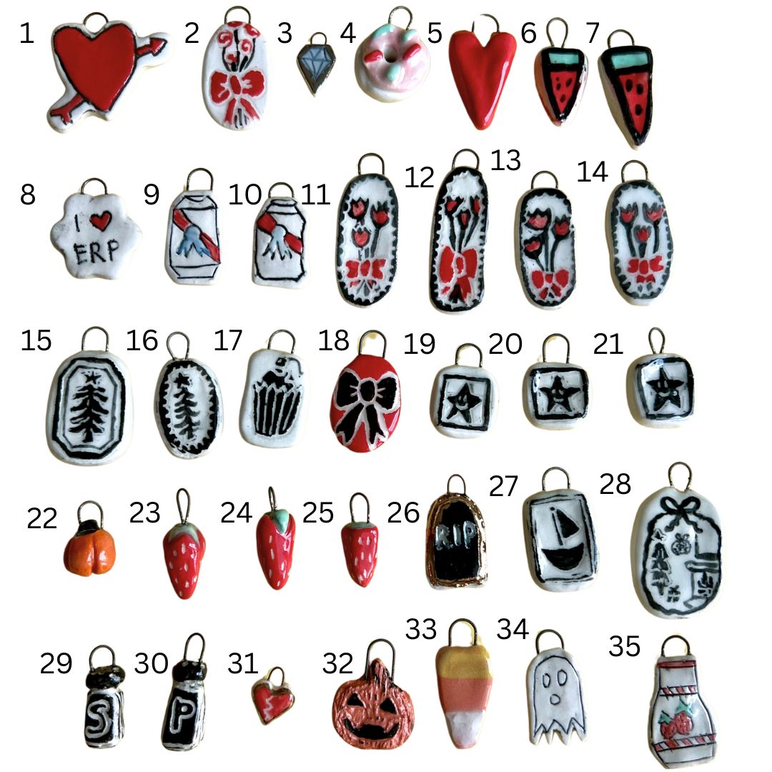 Welcome to the charm shop! Here are the handmade porcelain charms!
