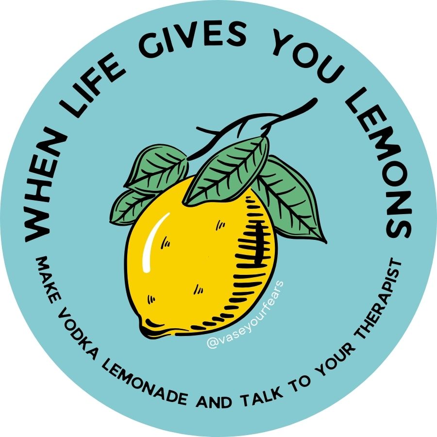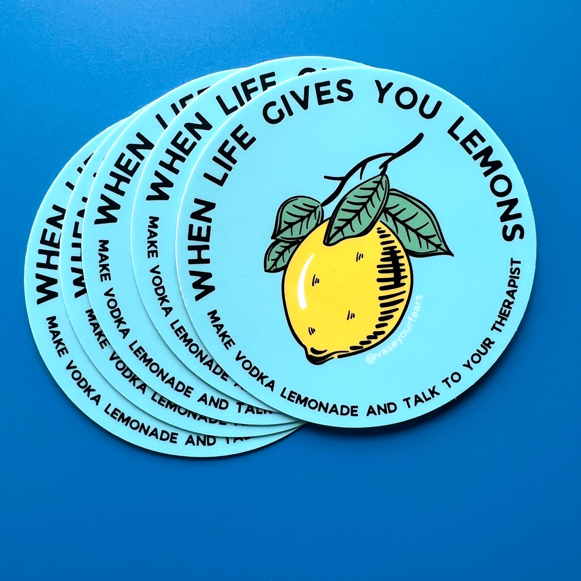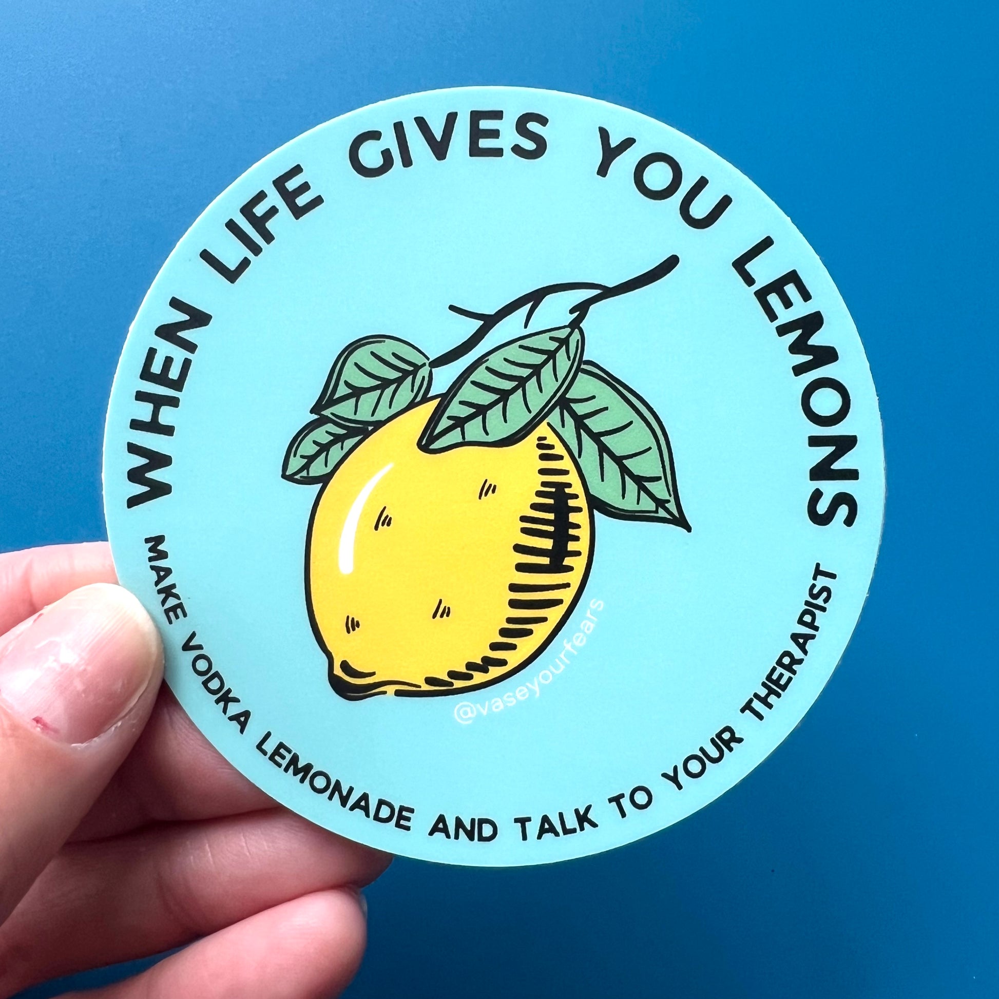 - Sticker that says "When Life Gives You Lemons Make Vodka Lemonade and Talk to Your Therapist”